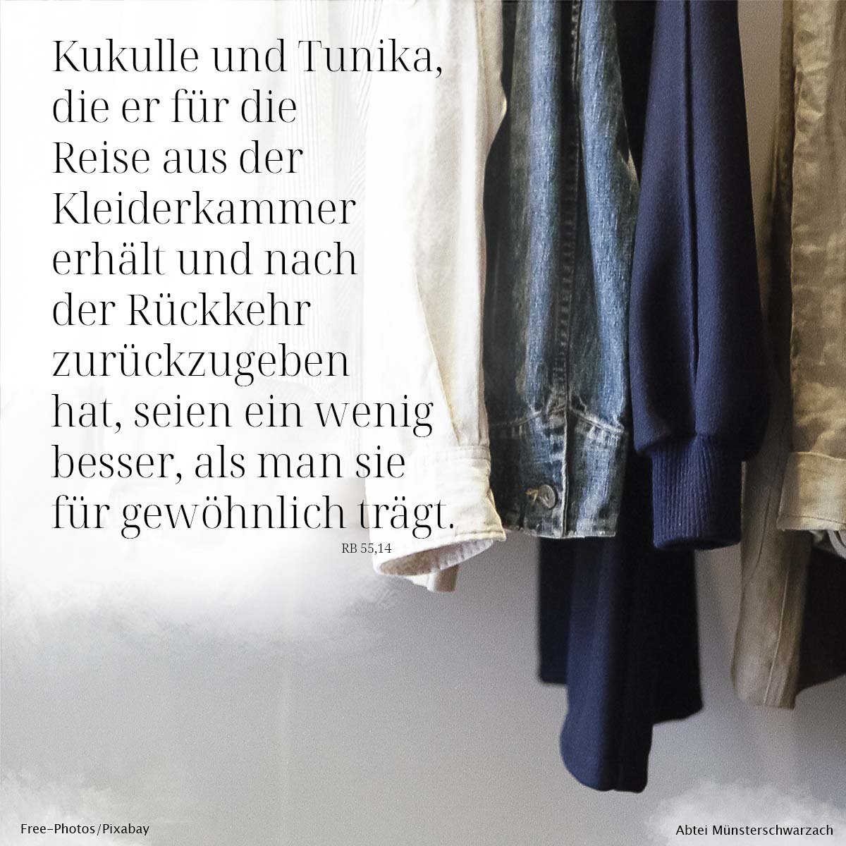 14. Kukulle und Tunika, die er für die Reise aus der Kleiderkammer erhält und nach der Rückkehr zurückzugeben hat, seien ein wenig besser, als man sie für gewöhnlich trägt.