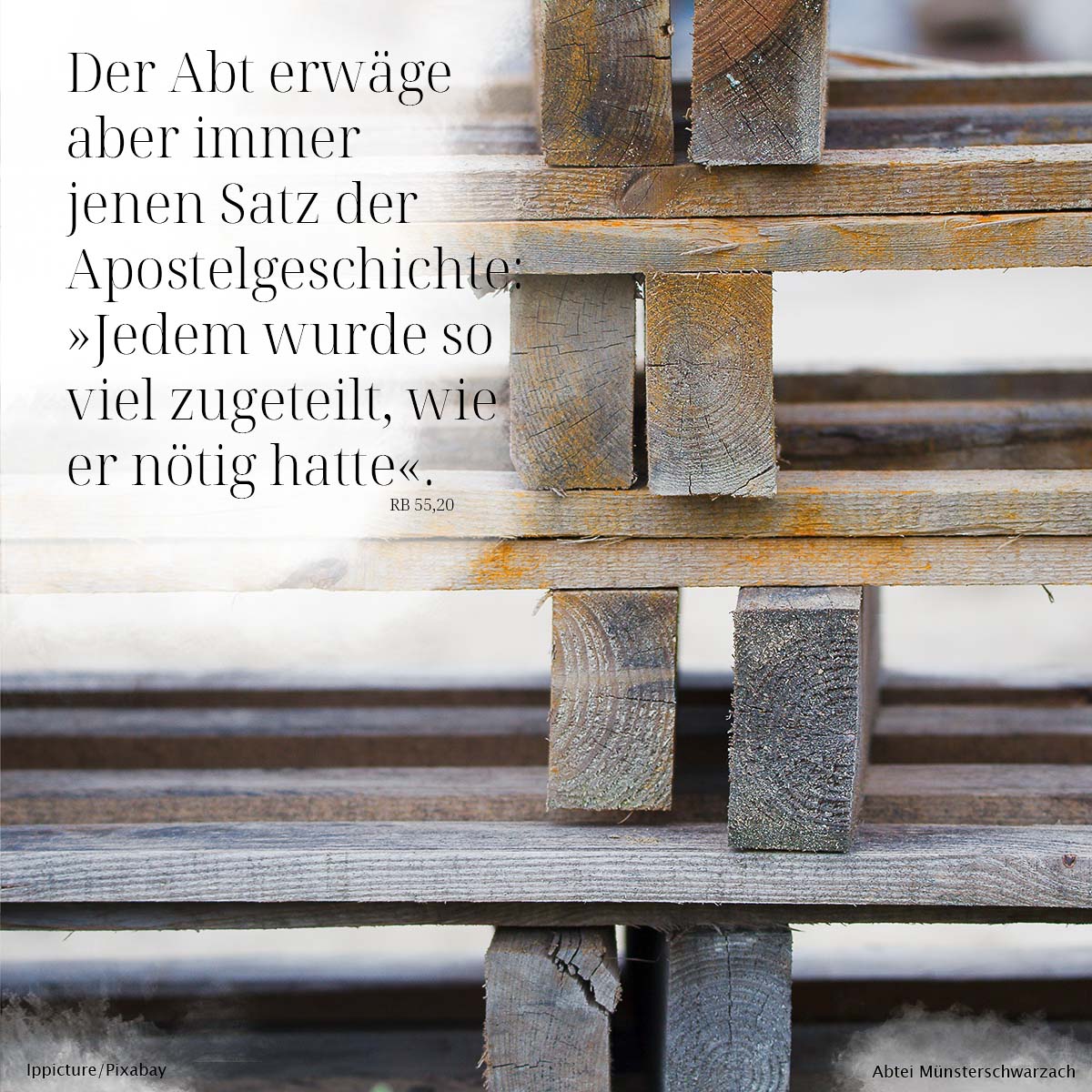 20. Der Abt erwäge aber immer jenen Satz der Apostelgeschichte: »Jedem wurde so viel zugeteilt, wie er nötig hatte
