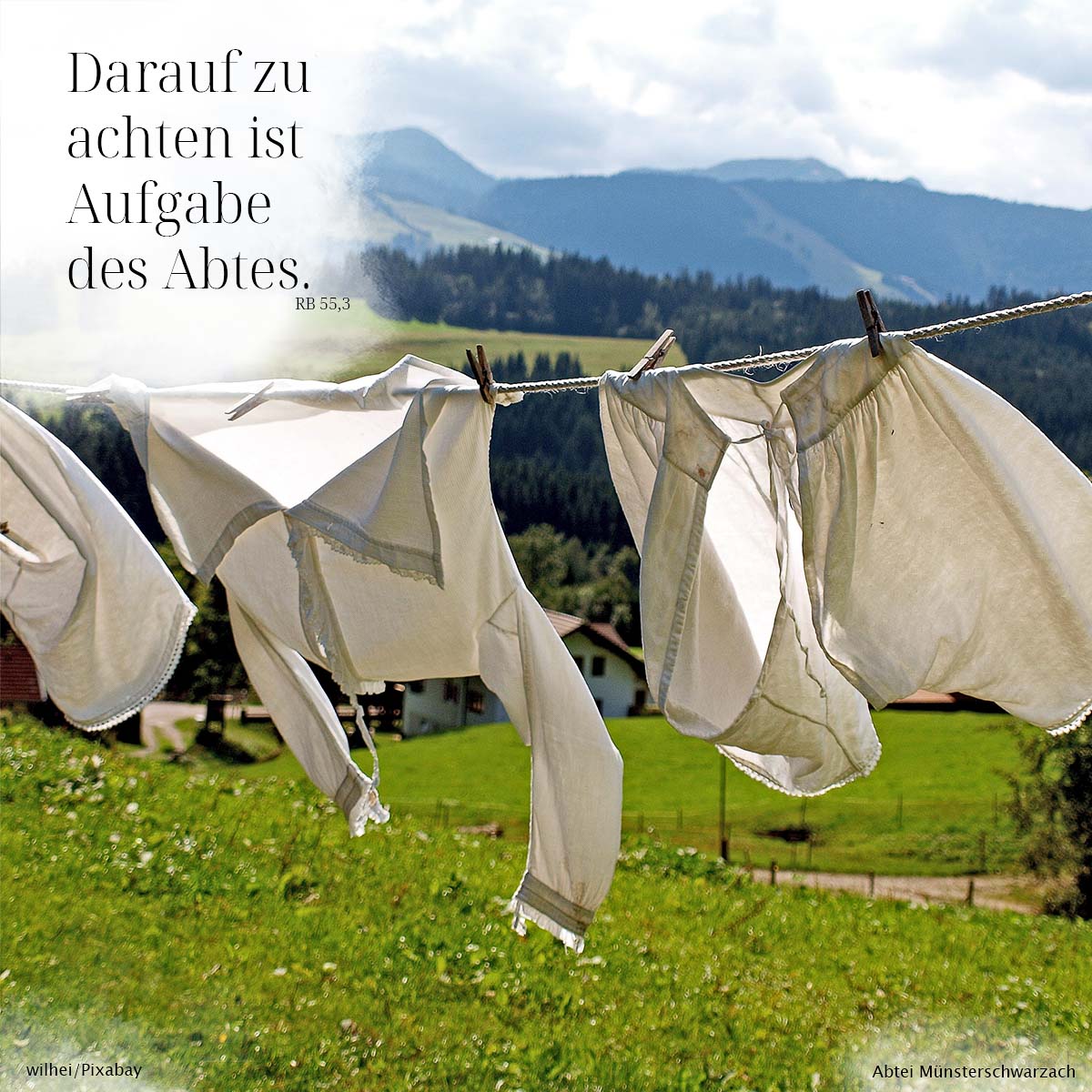 RB 55,3 Benediktsregel 55. Kapitel 3. Darauf zu achten ist Aufgabe des Abtes.Auch in diesem Kapitel weist Benedikt dem Abt eine besondere Verantwortung zu.Jeder soll das bekommen, was er braucht und benötigt.