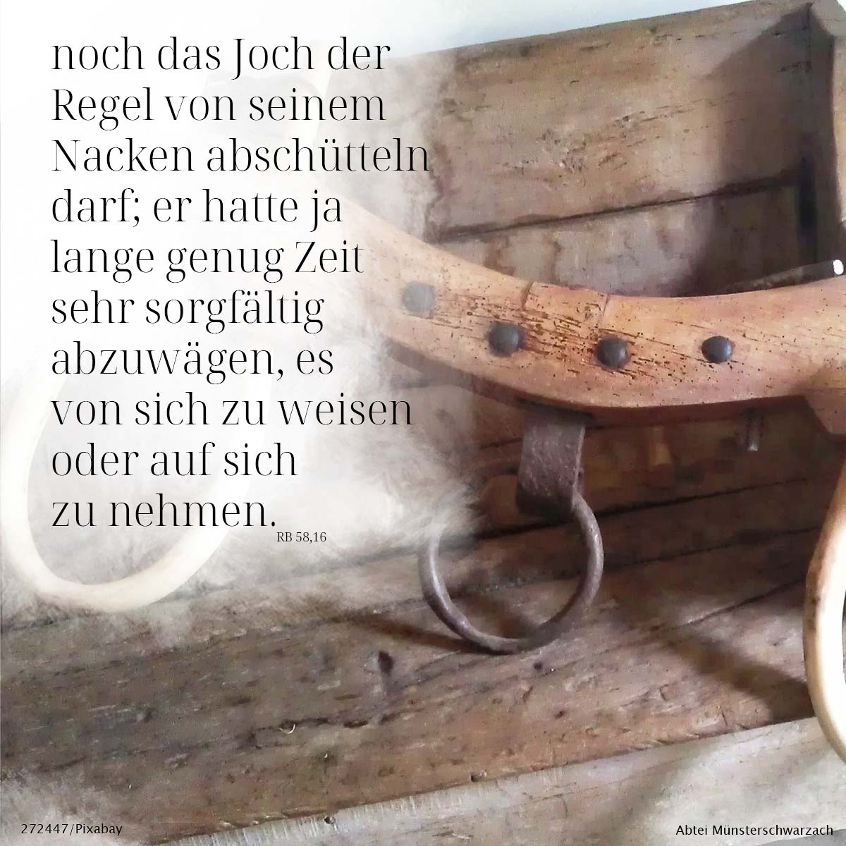 16. noch das Joch der Regel von seinem Nacken abschütteln darf; er hatte ja lange genug Zeit, sehr sorgfältig abzuwägen, es von sich zu weisen oder auf sich zu nehmen.