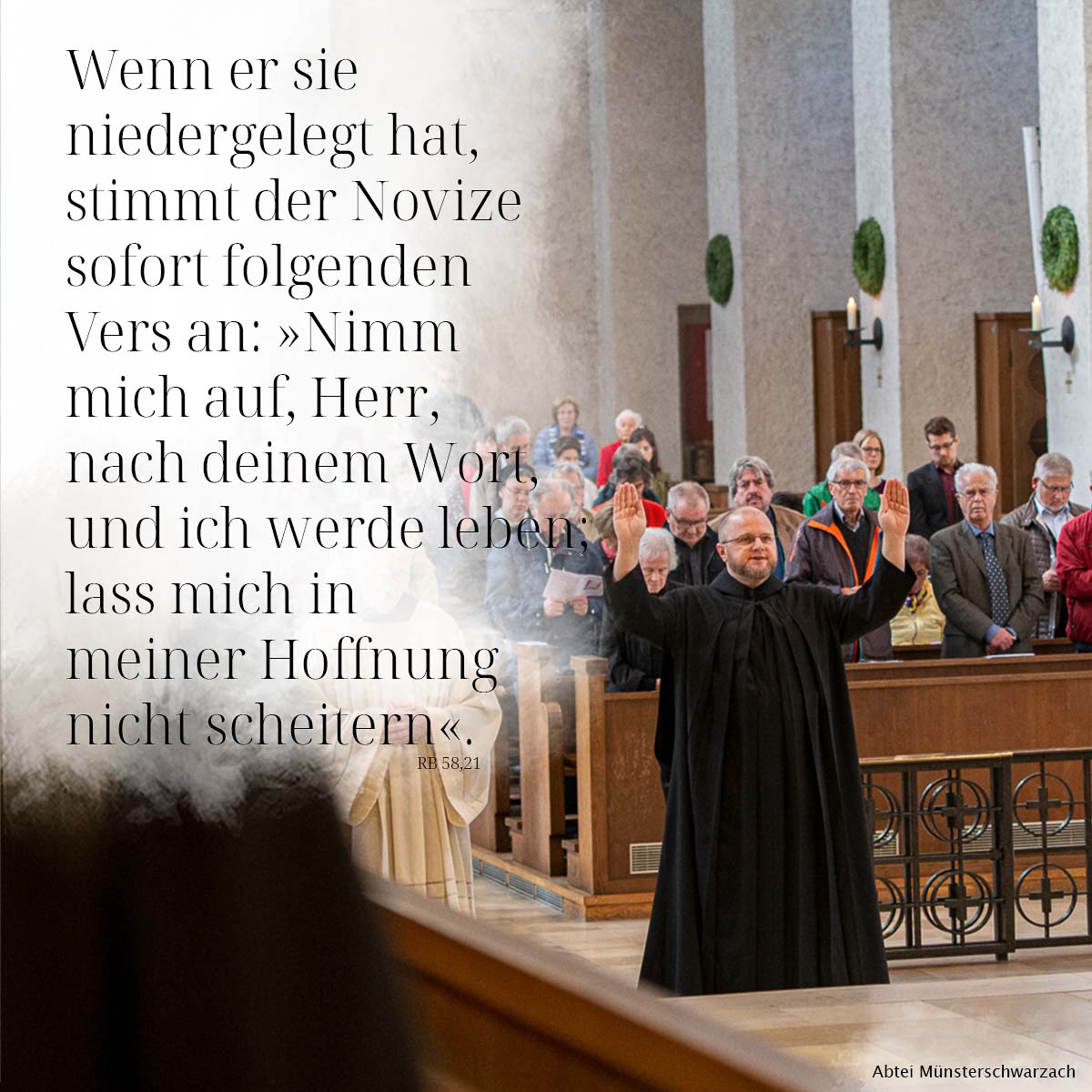 21. Wenn er sie niedergelegt hat, stimmt der Novize sofort folgenden Vers an: »Nimm mich auf, Herr, nach deinem Wort, und ich werde leben; lass mich in meiner Hoffnung nicht scheitern«.