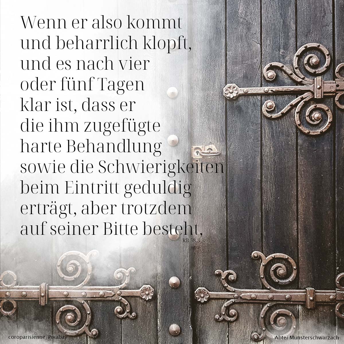 3. Wenn er also kommt und beharrlich klopft, und es nach vier oder fünf Tagen klar ist, dass er die ihm zugefügte harte Behandlung sowie die Schwierigkeiten beim Eintritt geduldig erträgt, aber trotzdem auf seiner Bitte besteht,
