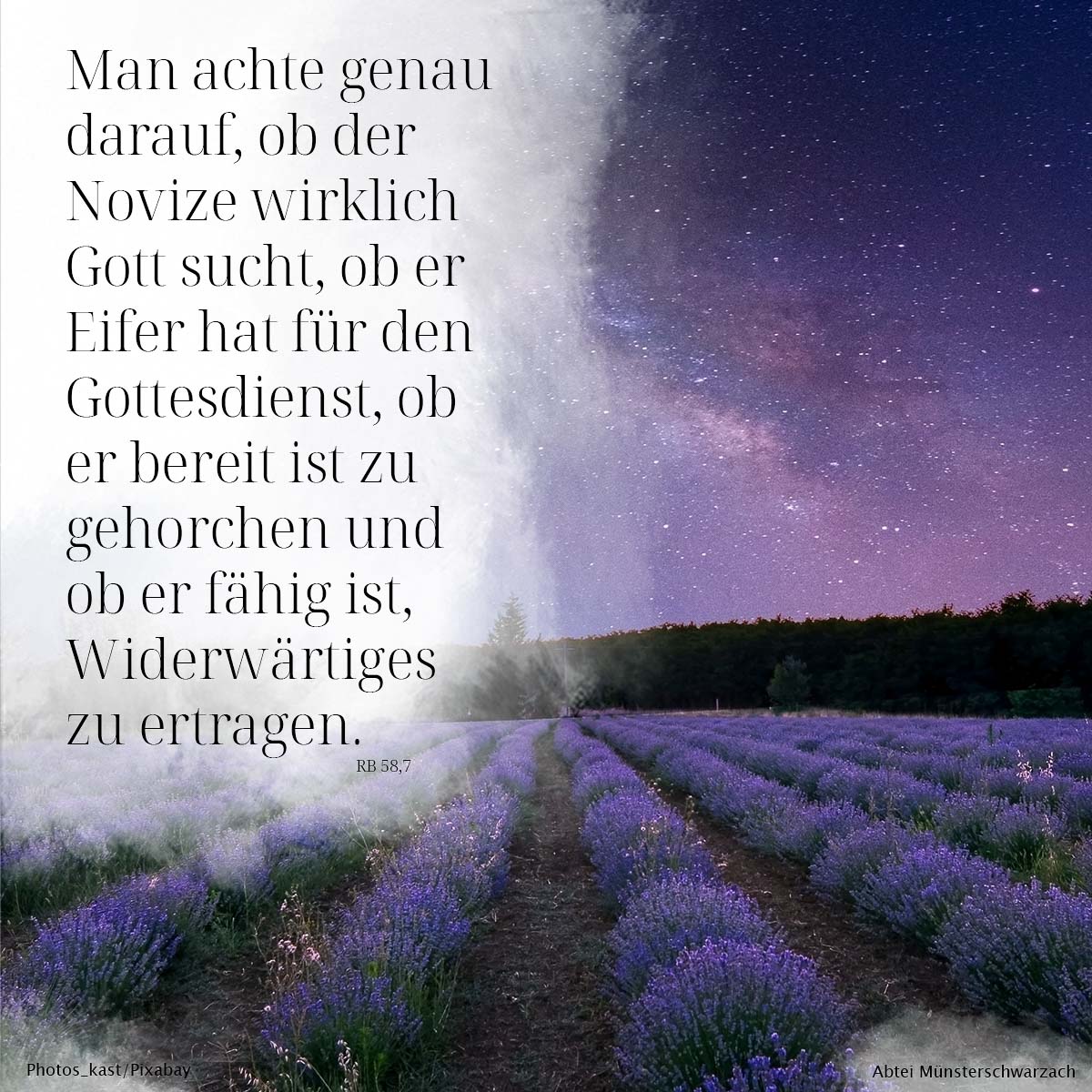 7. Man achte genau darauf, ob der Novize wirklich Gott sucht, ob er Eifer hat für den Gottesdienst, ob er bereit ist zu gehorchen und ob er fähig ist, Widerwärtiges zu ertragen.