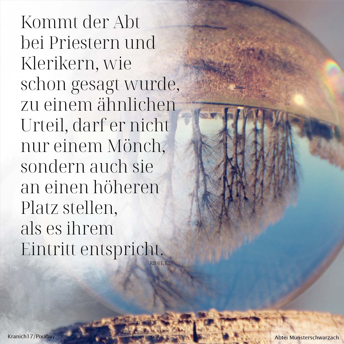 Doch immer zu bedenken gibt er, dass diese Entscheidung nur durch den Abt und nur aufgrund von Verhalten und Vorbildfunktion getroffen werden soll.