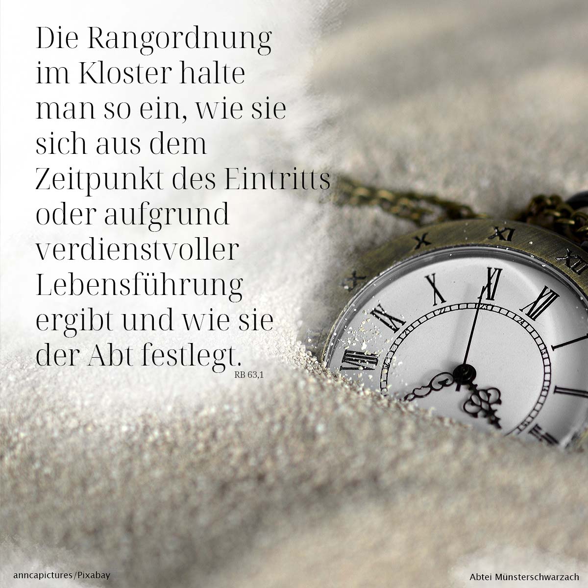 Im 63. Kapitel kommt Benedikt auf die Rangordnung und damit den eigenen Platz in der Gemeinschaft zu sprechen.