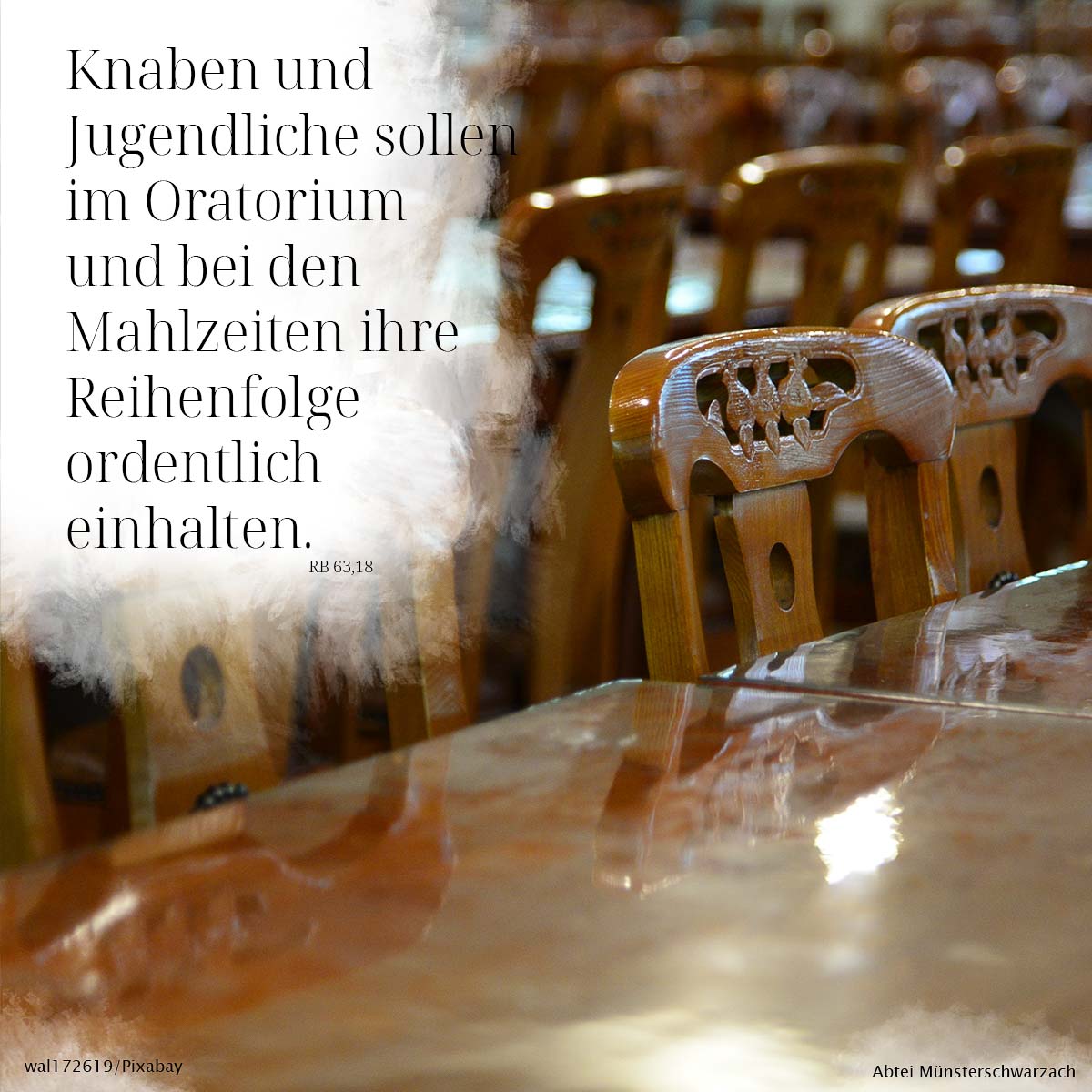 18. Knaben und Jugendliche sollen im Oratorium und bei den Mahlzeiten ihre Reihenfolge ordentlich einhalten.