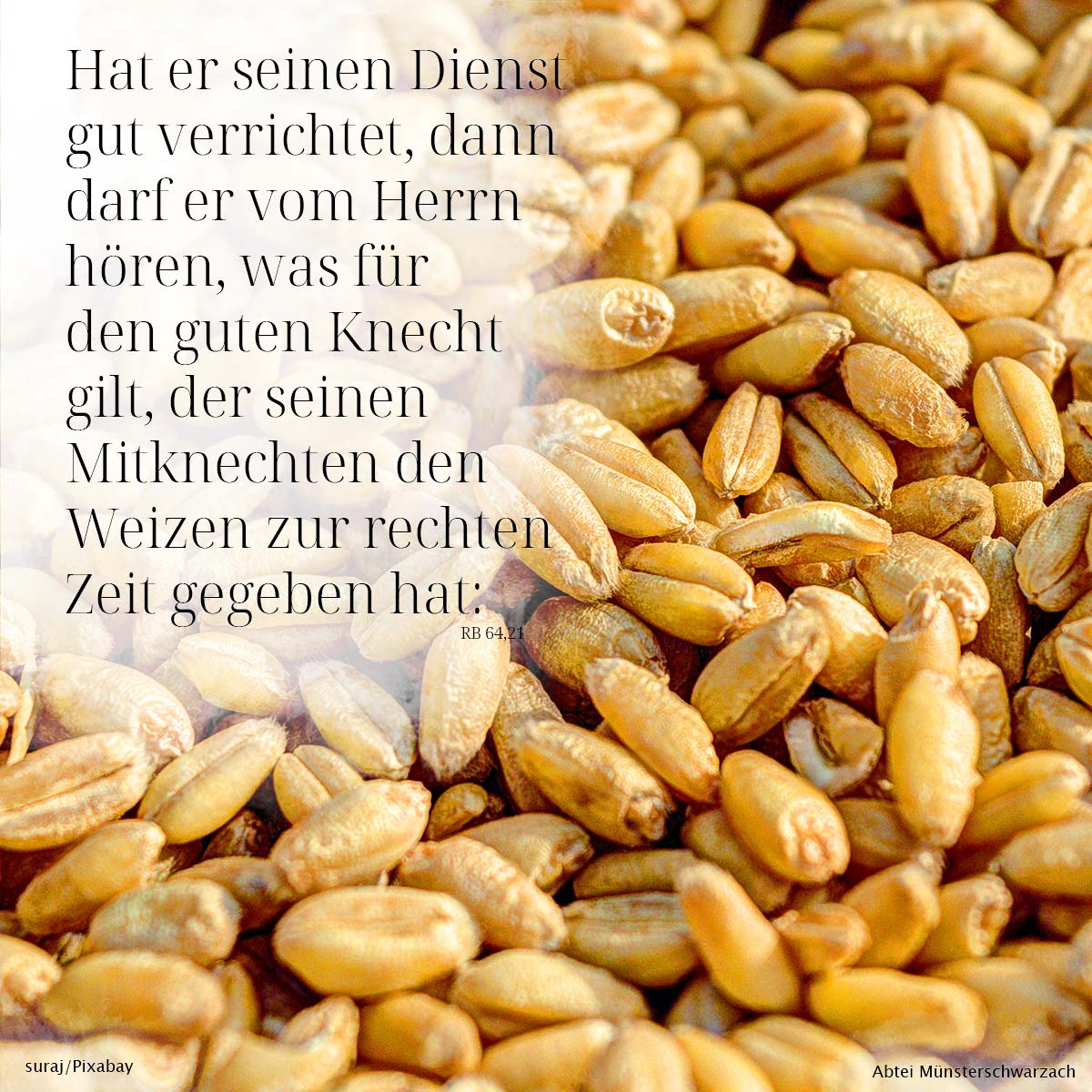 21. Hat er seinen Dienst gut verrichtet, dann darf er vom Herrn hören, was für den guten Knecht gilt, der seinen Mitknechten den Weizen zur rechten Zeit gegeben hat.