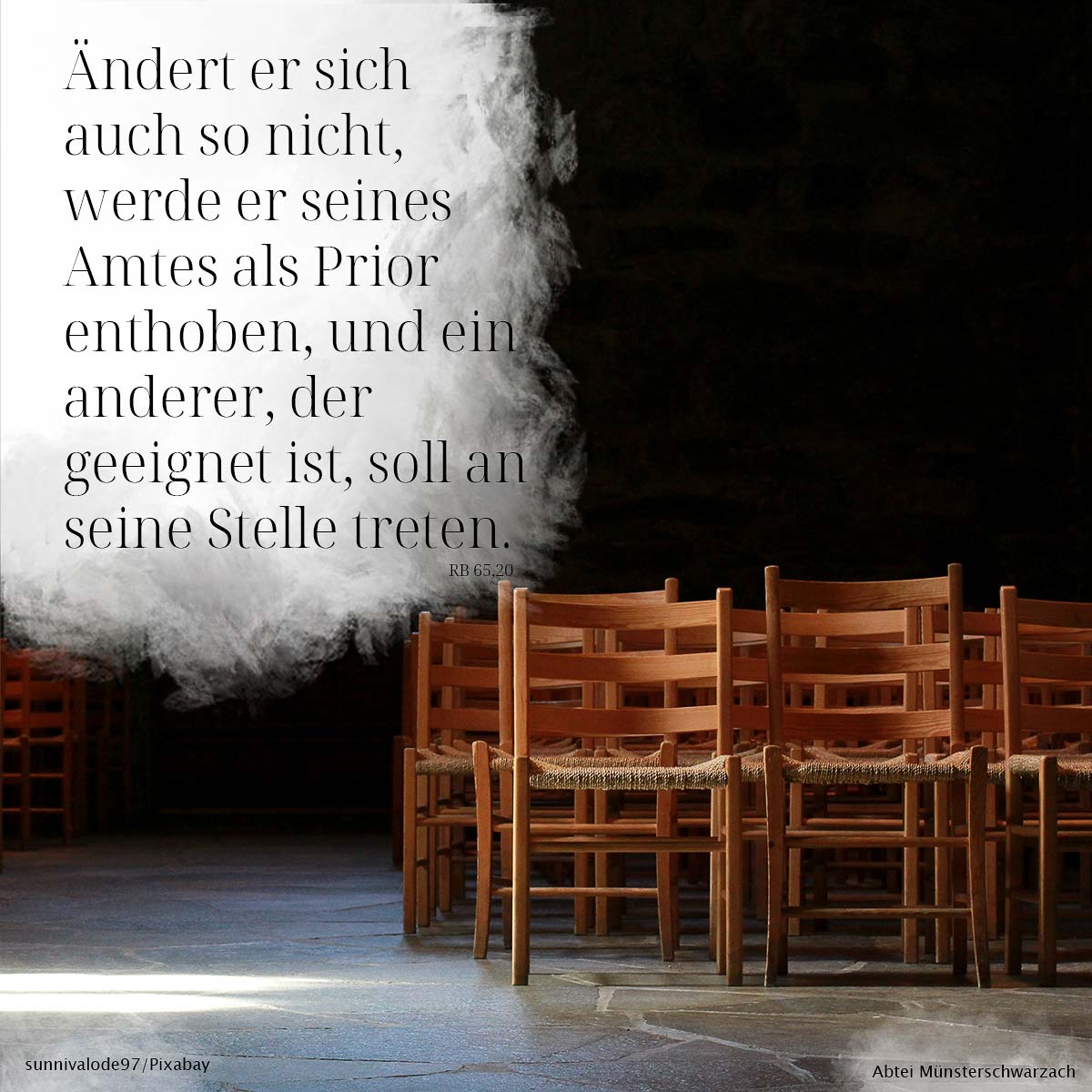 20. Ändert er sich auch so nicht, werde er seines Amtes als Prior enthoben, und ein anderer, der geeignet ist, soll an seine Stelle treten.