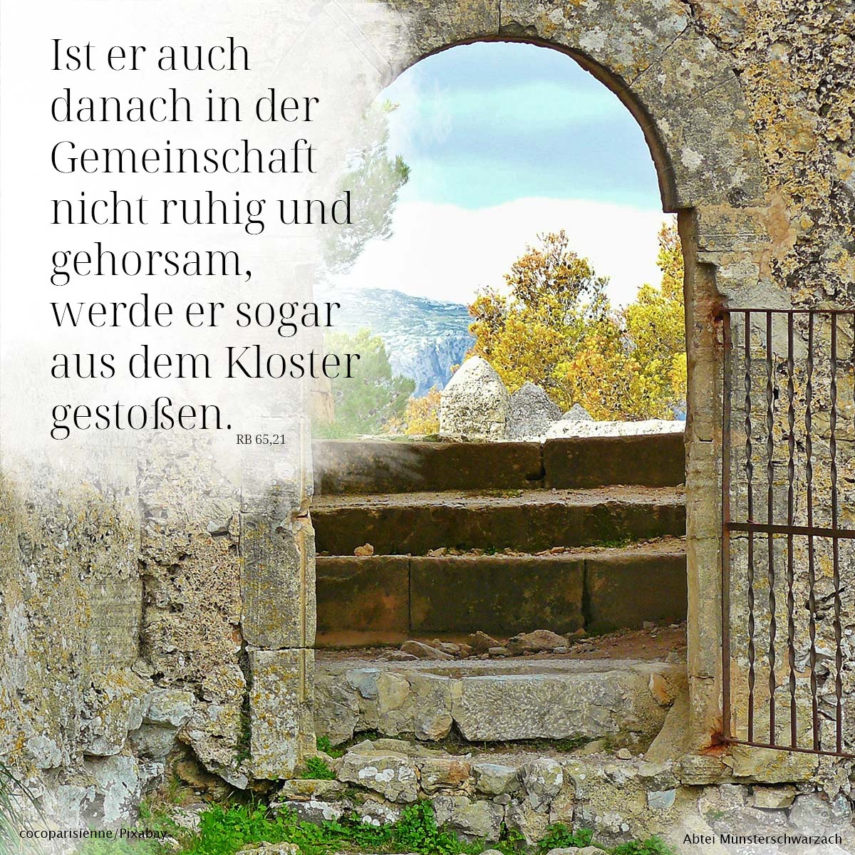 21. Ist er auch danach in der Gemeinschaft nicht ruhig und gehorsam, werde er sogar aus dem Kloster gestoßen.