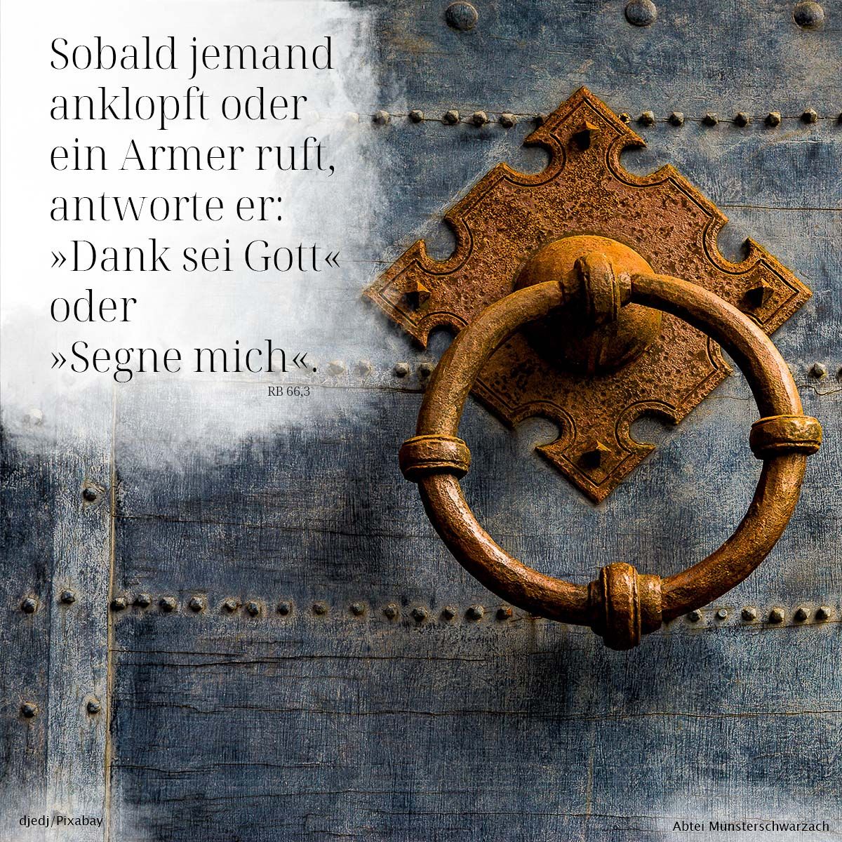 3. Sobald jemand anklopft oder ein Armer ruft, antworte er: »Dank sei Gott« oder »Segne mich«.