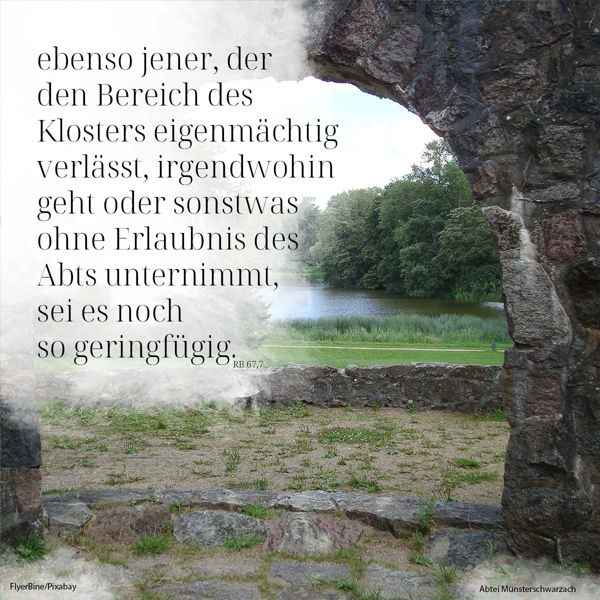 7. ebenso jener, der den Bereich des Klosters eigenmächtig verlässt, irgendwohin geh oder sonst etwas ohne Erlaubnis des Abtes unternimmt, sei es noch zu geringfügig.