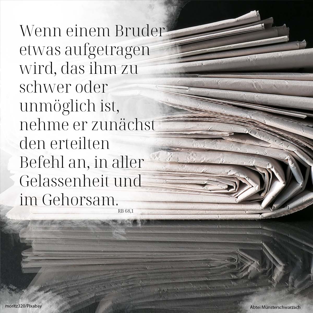1. Wenn einem Bruder etwas aufgetragen wird, das ihm zu schwer oder unmöglich ist, nehme er zunächst den erteilten Befehl an, in aller Gelassenheit und im Gehorsam.