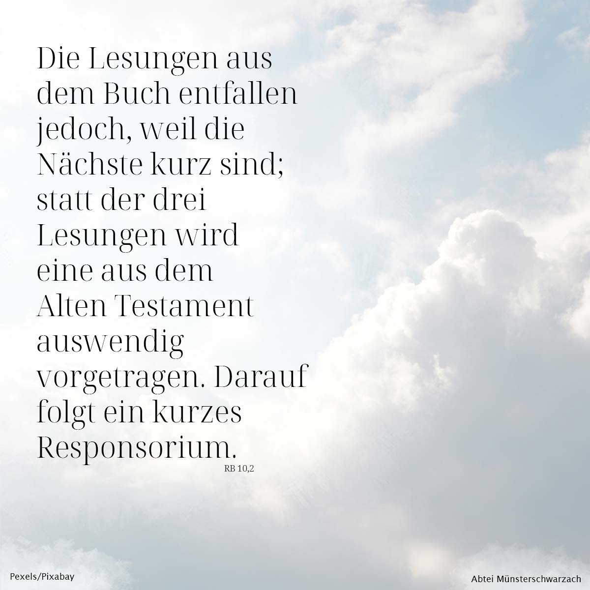 Weil die Nächte kürzer sind entfallen Lesungen, da sich alles an den Laudes ausrichtet, die zum Sonnenaufgang zu beten sind.