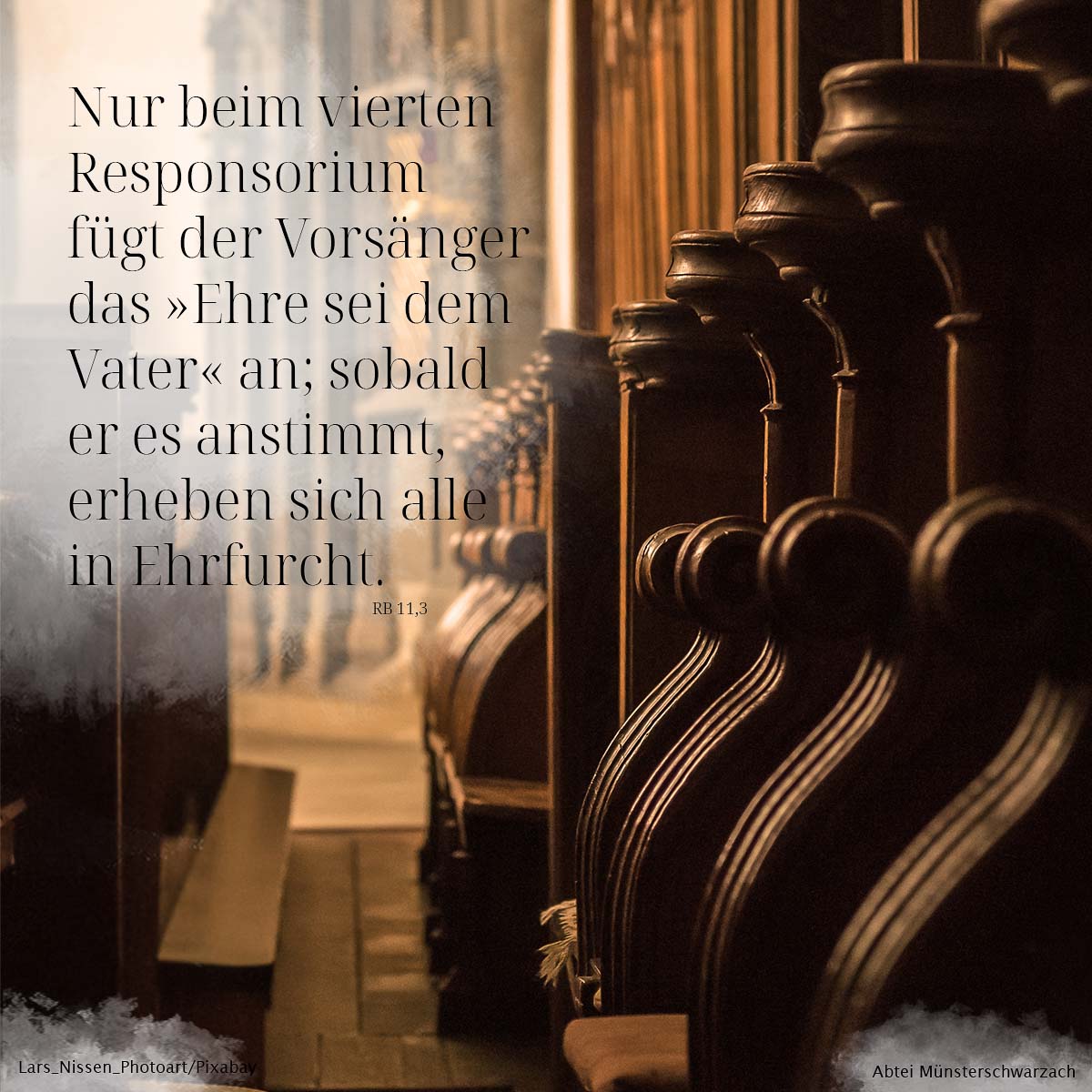 3. Nur beim vierten Responsorium fügt der Vorsänger das »Ehre sei dem Vater« an; sobald er es anstimmt, erheben sich alle in Ehrfurcht.