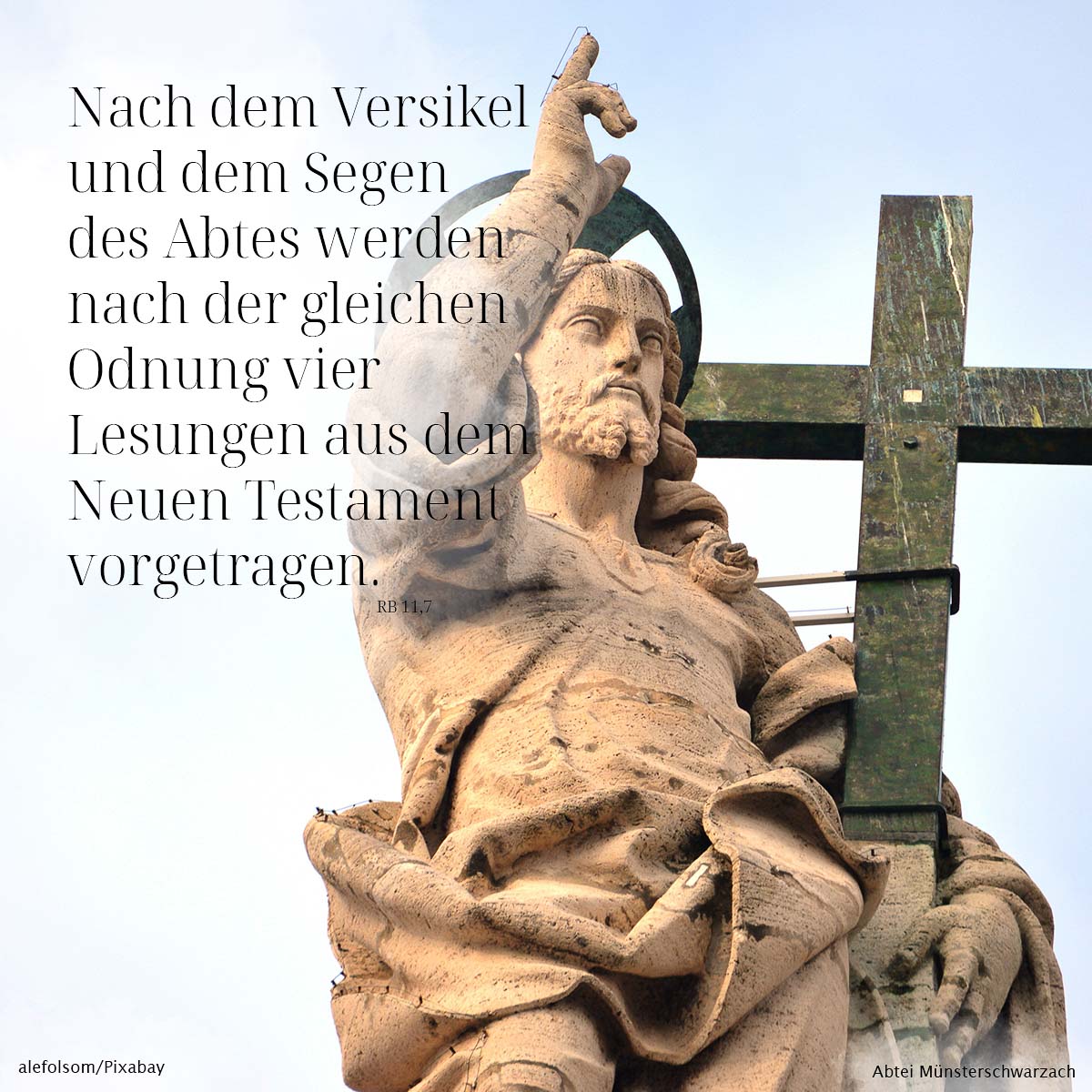 7. Nach dem Versikel und dem Segen des Abtes werden nach der gleichen Ordnung vier Lesungen aus dem Neuen Testament vorgetragen.