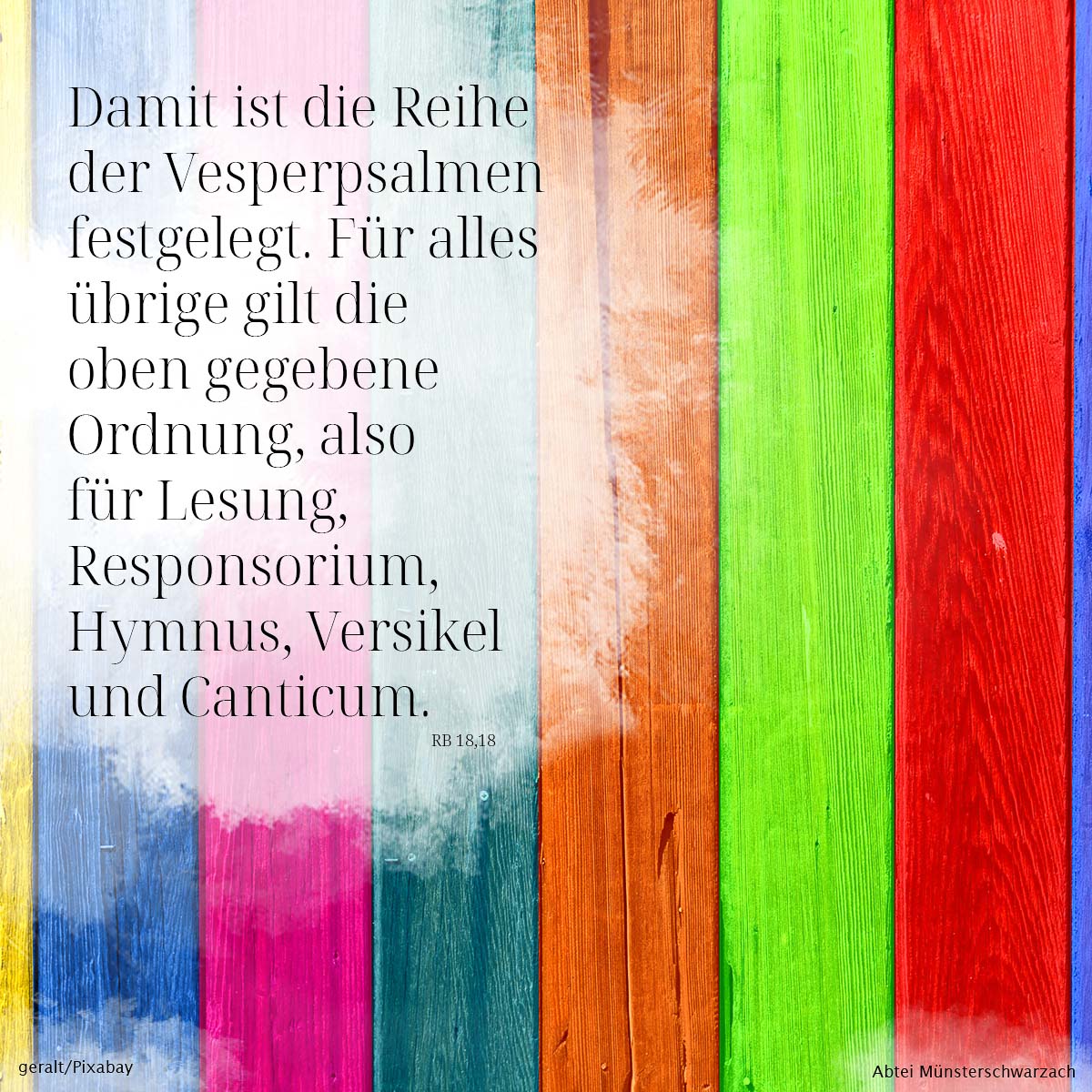 Nach dem Festlegen der Psalmenordnung bestimmt Benedikt, dass auch für die Vesper die Ordnung der anderen Gebetszeiten gelten.