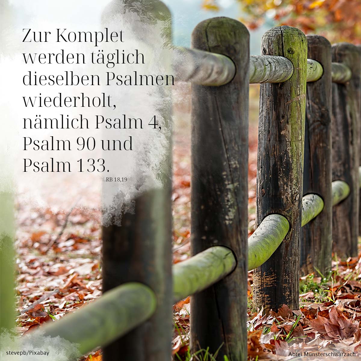 19. Zur Komplet werden täglich dieselben Psalmen wiederholt; nämlich Psalm 4, Psalm 90 und Psalm 133.