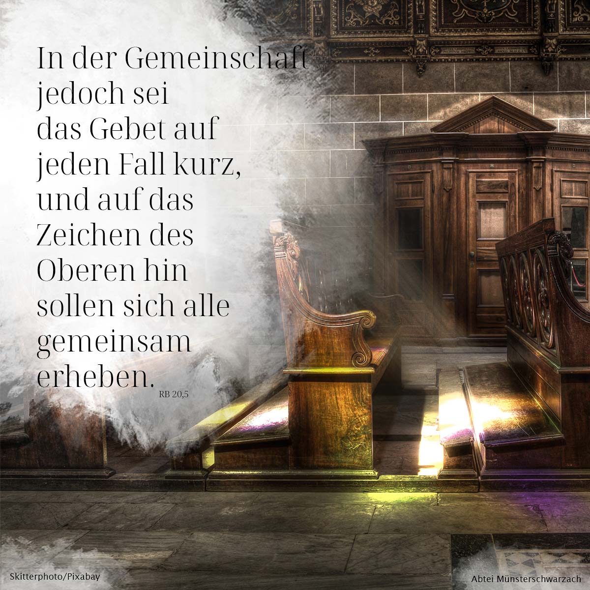 5. In der Gemeinschaft jedoch sei das Gebet auf jeden Fall kurz, und auf das Zeichen des Oberen hin sollen sich alle gemeinsam erheben.