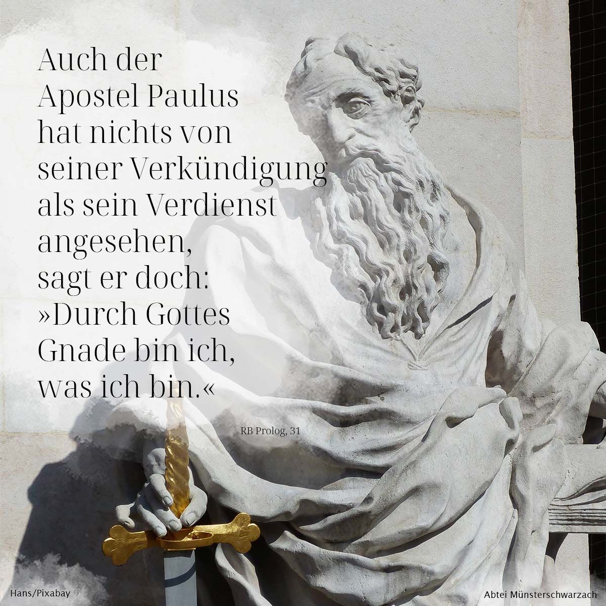 31. Auch der Apostel Paulus hat nichts von seiner Verkündigung als sein Verdienst angesehen, sagt er doch: »Durch Gottes Gnade bin ich, was ich bin.«