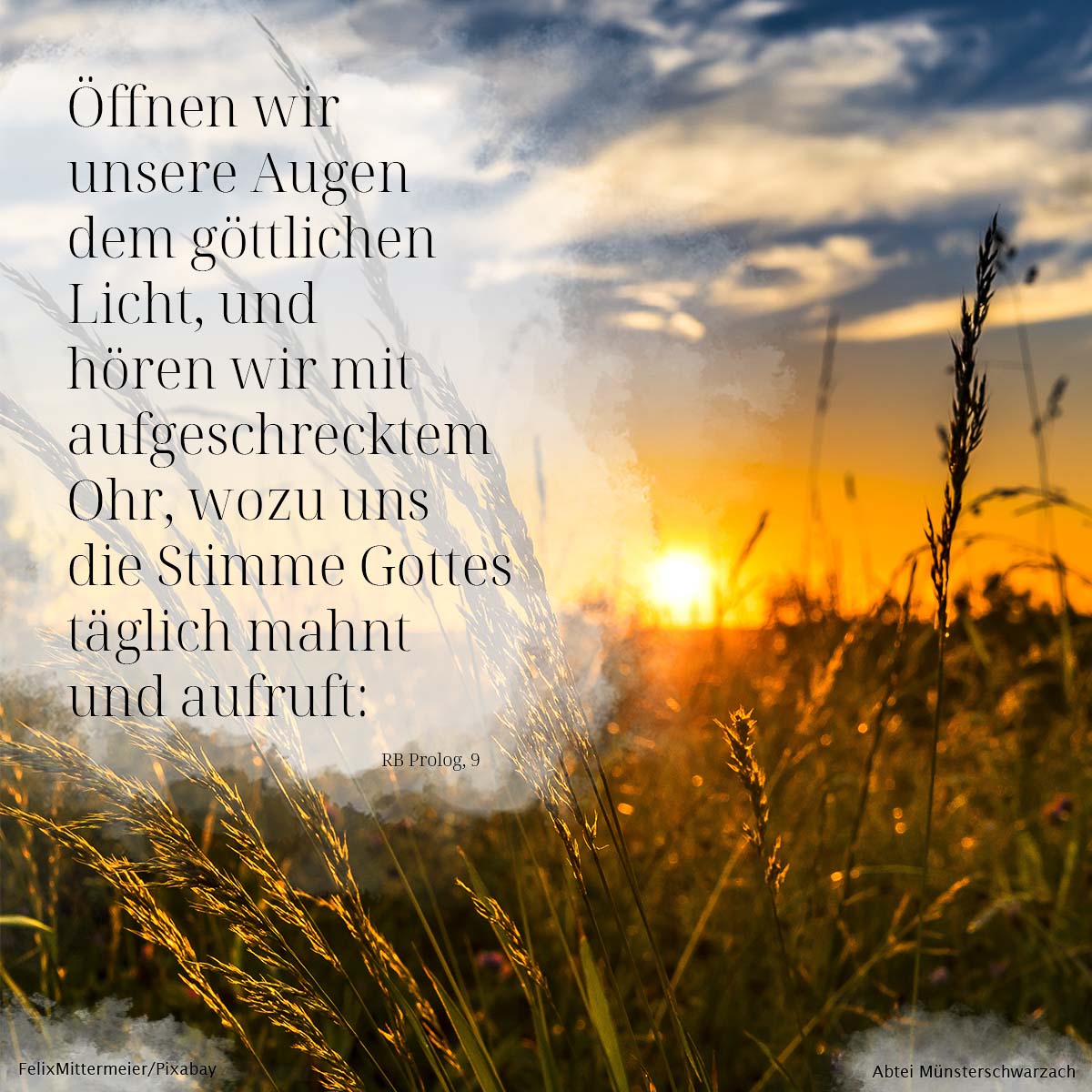 9. Öffnen wir unsere Augen dem göttlichen Licht, und hören wir mit aufgeschrecktem Ohr, wozu uns die Stimme Gottes täglich mahnt und aufruft: