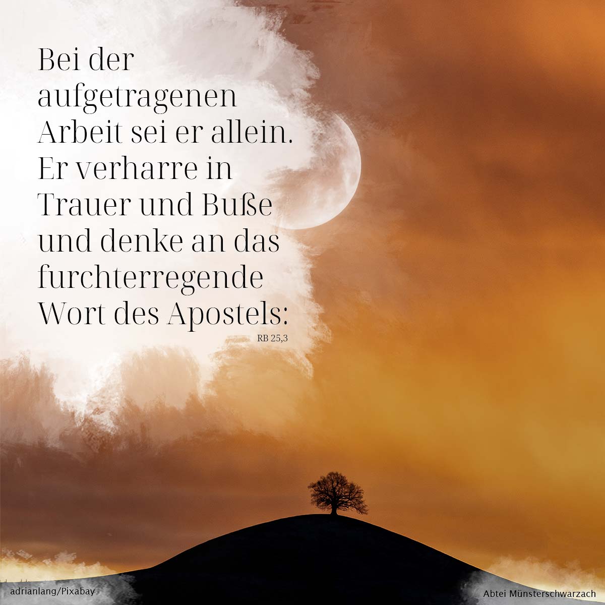 3. Bei der aufgetragenen Arbeit sei er allein. Er verharre in Trauer und Buße und denke an das furchterregende Wort der Apostels: