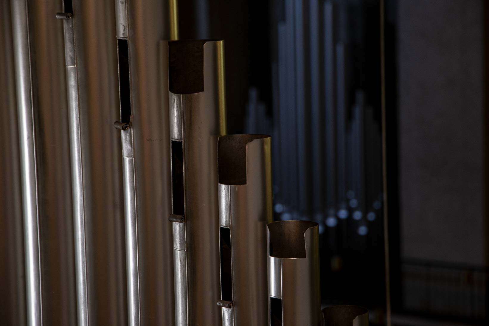 246 Pfeifen sind auch von vorne sichtbar. Die restlichen der insgesamt 4.338 Pfeifen sind versteckt. Über Elektromagnete und Kegelladen, die über beide Chorseiten reichen, werden die Pfeifen angespielt.