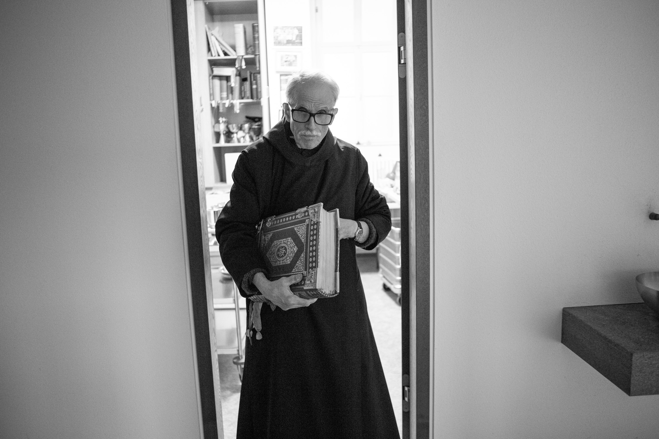 Br. Bernhard war von Jugend an Ministrant und dem Gottesdienst verbunden. Diese Sorgfalt und Verliebtheit in Gewänder und liturgische Geräte, in kirchliche Kleidung und Bräuche gehörten zu ihm. Folgerichtig besuchte Br. Bernhard mit seinem treuen Mitbruder Br. Theodor auch die wichtigsten Wallfahrtsorte. Ein Foto der Pilgergruppe 1989 in Lourdes, das ihn in der ersten Reihe zeigt, steht für manches andere. In der ersten Reihe sieht man die beiden auch bei der Papstaudienz bei Johannes Paul II. Br. Bernhard stand mit allen Päpsten seiner Jahre in Kontakt. Der letzte Brief aus dem Vatikan vom 4. Februar 2024 bedankt sich für die Weihnachtsgrüße an Papst Franziskus.