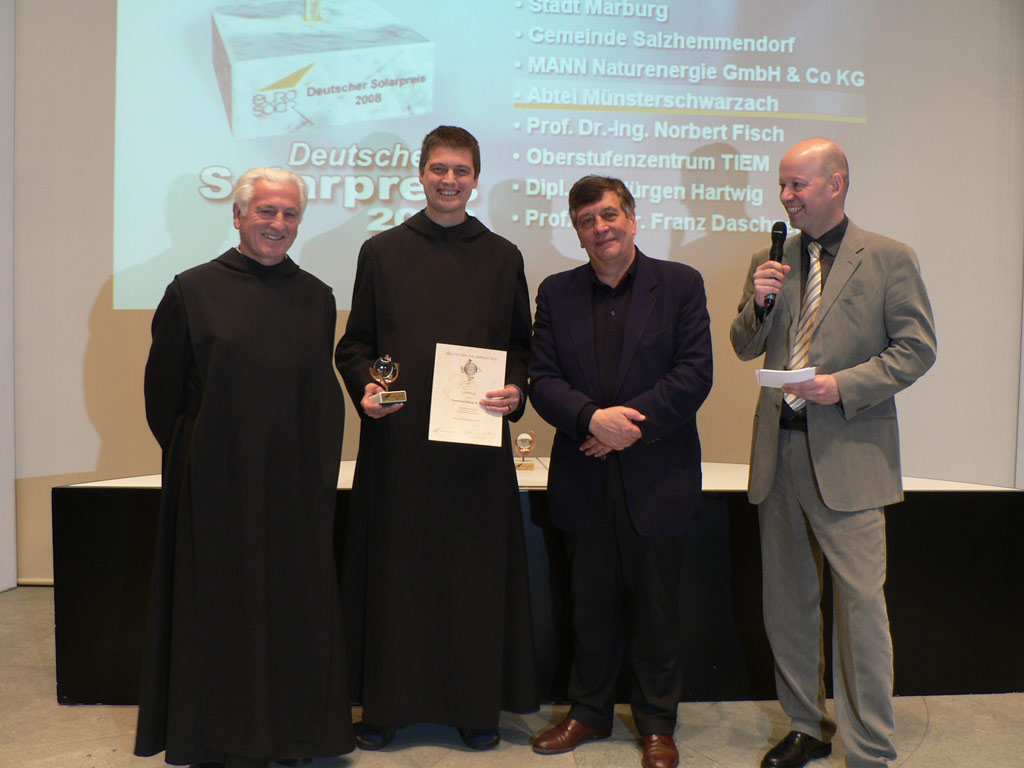 Die Abtei Münsterschwarzach ist der Jury vorgeschlagen worden. Die Benediktinerabtei Münsterschwarzach bekam für Ihr herausragendes Engagement und Ihre großen Erfolge beim Umstieg auf Erneuerbare Energien und Ihrem Beitrag zur Bewahrung der Schöpfung den Solarpreis 2008 verliehen.
