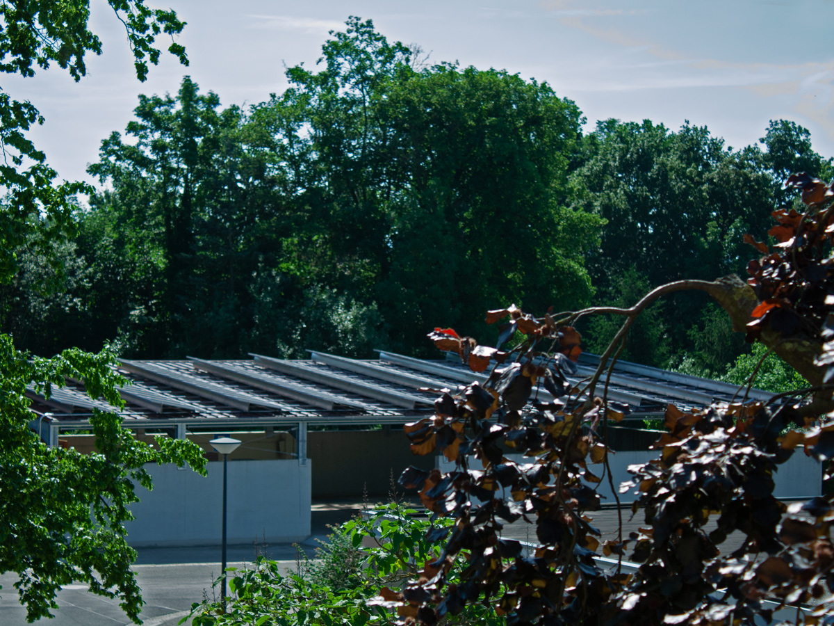 Als der Wunsch nach einer Überdachung des Parkplatzes geäußert wurde, kam auch schnell die Bestückung des Daches mit einer Photovoltaikanlage ins Gespräch. Die Vorgespräche der bauenden Firma NE-Solar aus Werneck mit dem Netzbetreiber waren auch positiv, sodass sich die Mönche der Abtei Münsterschwarzach für die Realisierung dieses Projektes aussprachen. Die erste Verzögerung ergab sich durch den länger dauernden Winter, da die Stahlbaufirma nicht so schnell das Dach montieren konnte, wie es ursprünglich geplant war. Als dann der konkrete Bau der PV-Anlage anstand wurde es kompliziert.