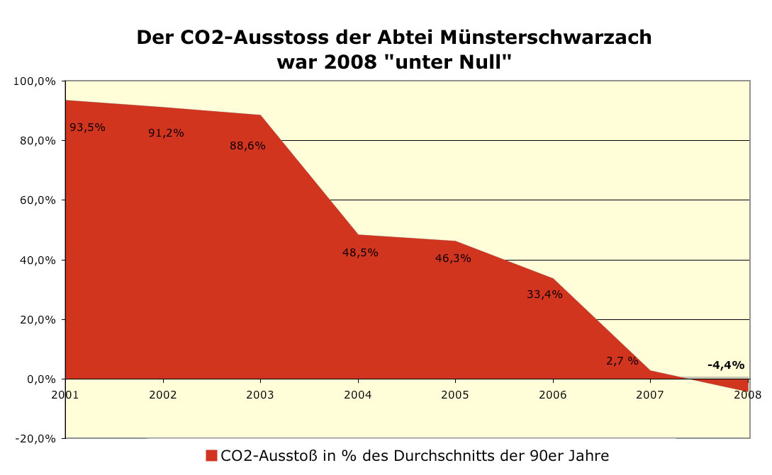 Es begann im Jahr 2000 mit unserem Klosterprojekt "Neue Energien". Innerhalb von zehn Jahren wollten wir Mönche uns mit regenerativen Energiequellen aus der Region versorgen. Nach einer Energie-Datenaufnahme des ganzen Klosters, der Renovierung des Wasserkraftwerkes, wurden bis 2007 mit dem Bau einer Photovoltaikanlage, Holzenergiezentrale und Biogasanlage 95 % des Kohlendioxidausstosses reduziert. Begleitend konnte durch Wärmedämmung etwa 15 % der Heizenergie eingespart werden.