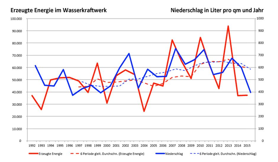 Regentendenz der letzten Jahrzehnte und Energieerzeugung