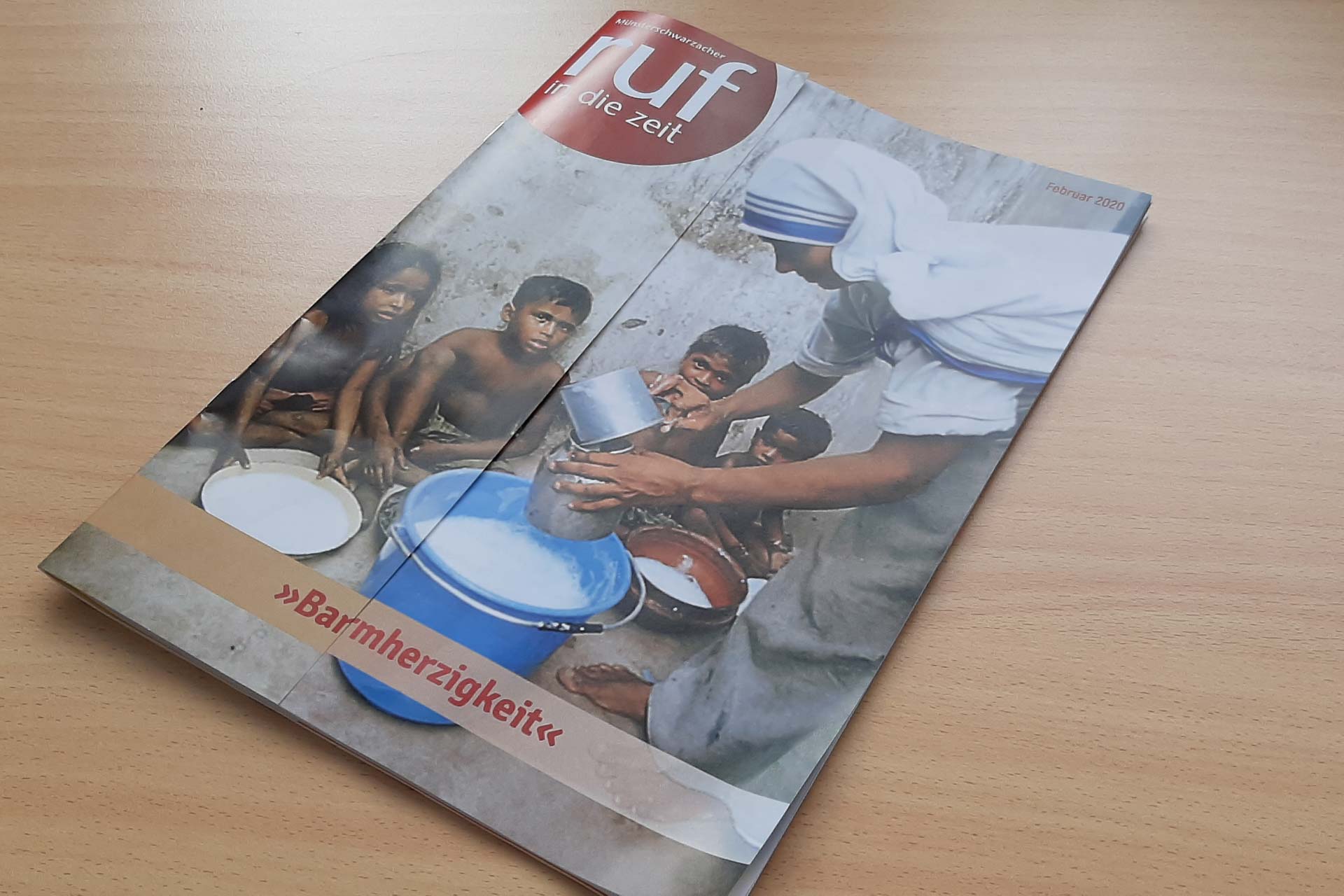 Der "Ruf in die Zeit" erscheint vier Mal im Jahr und vertieft aktuelle Themen. Zugleich informiert das Magazin über Hilfsprojekte der Missionsbenediktiner sowie über Neues aus der Abtei Münsterschwarzach. Der "Ruf in die Zeit" wird an Freunde und Spender verteilt. Im Internet ist er als Pdf abrufbar. Die nächste Ausgabe erscheint im Mai mit dem Schwerpunktthema "Phantasie".
