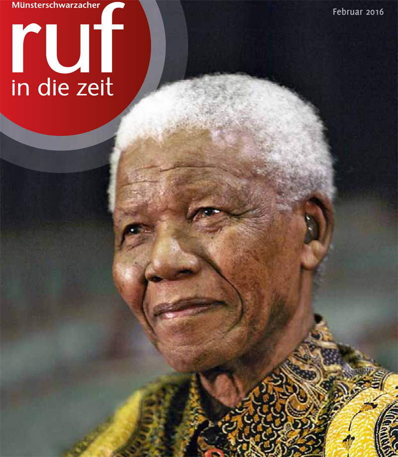 Den Titel des neuen „Ruf in die Zeit“ zeigt das Bild eines Mannes, der Vergebung vorbildlich gelebt hat: Nelson Mandela. Unter dem Titel „Versöhnung statt Rechsprechung“ berichtet Pater Gottfried Sieber OSB, wie Südafrika nach der Aufhebung der Rassengesetze und der Beendigung der jahrzehntelang praktizierten Politik der Apartheid nach 1994 seinen ganz eigenen Weg im Umgang mit den Verbrechen der Vergangenheit gefunden hat.