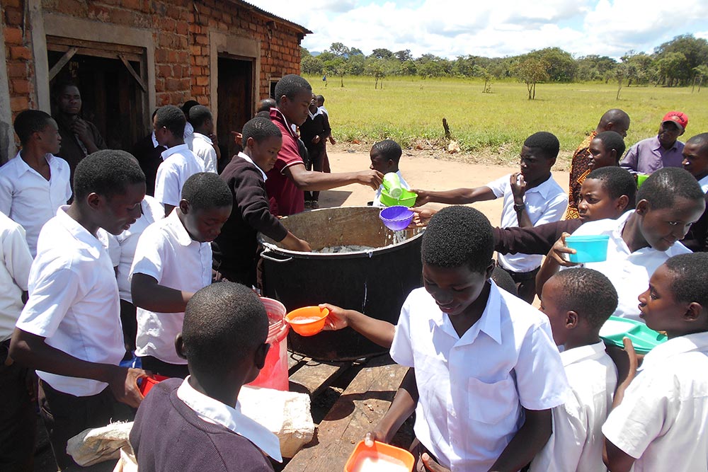 Sehr einfach geht es in der Sekundarschule im Dorf Mdundowalo zu. Es gibt weder Strom noch fließendes Wasser. Die Kinder holen sich das Wasser aus einer nahe gelegenen Wasserstelle. Die Schule liegt am Rand des abgelegenen Dorfes. Die Straße endet hier und eine unendliche Buschlandschaft liegt im Blick der Schule.