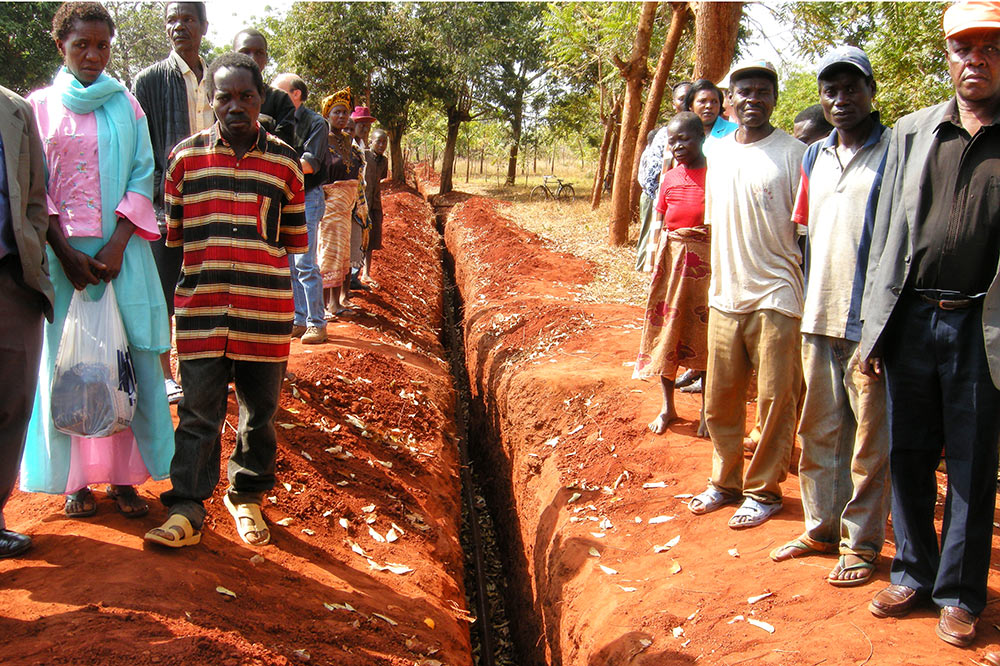 Damit die Dörfer die Wasserleitung als ihr eigenes Projekt aufnehmen, werden alle Arbeiten von den Bewohnern selbst erledigt. Von den Spendengeldern bezahlen wir nur die Materialien. In einem anderen Dorf haben die Menschen in sechs Wochen einen vier Kilometer langen Graben gegraben. An dieser großen Arbeitsbereitschaft erkennt man gut, wie wichtig den Menschen das Wasser ist. Wenn alle mit anpacken, stärkt das auch die dörfliche Gemeinschaft. Ein Segen in vielerlei Hinsicht.