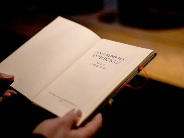 Das Stundengebet ist ein wichtiger Bestandteil monastischen Lebens. Beten und Arbeiten - ora et labora - so lässt sich unser Tagesrhythmus gut zusammenfassen. Unser Ordensgründer Benedikt von Nursia hat bereits in seiner Klosterregel präzise Angaben zu den Gebetszeiten und Psalmen festgeschrieben. Vor dem Hintergrund dieser Jahrhunderte alten Tradition versuchen wir, unser Leben zu gestalten und nach Gott auszurichten.