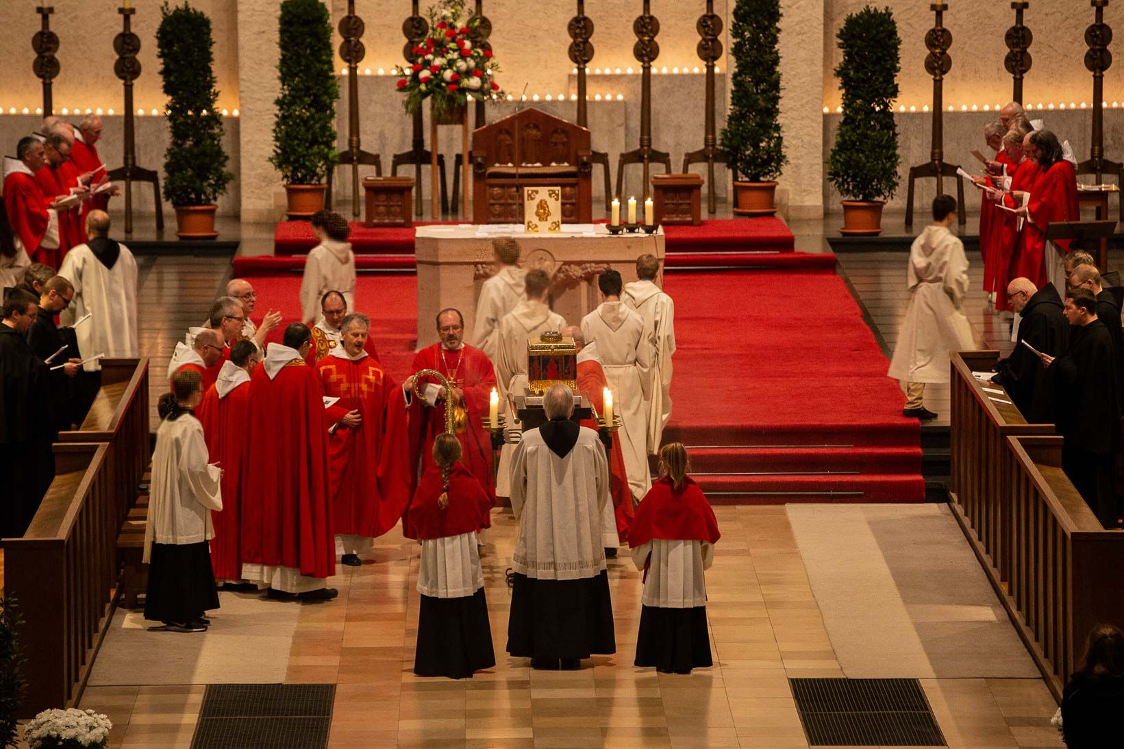 An Hochfesten steht der Abt der Eucharistiefeier vor. Wir nennen das feierliche Hochamt Pontifikalamt. Der Abt ist der Pontifex, der Brückenbauer zwischen der Gemeinschaft und Christus, der die Gemeinschaft trägt. Und er ist der Brückenbauer zwischen Himmel und Erde.
