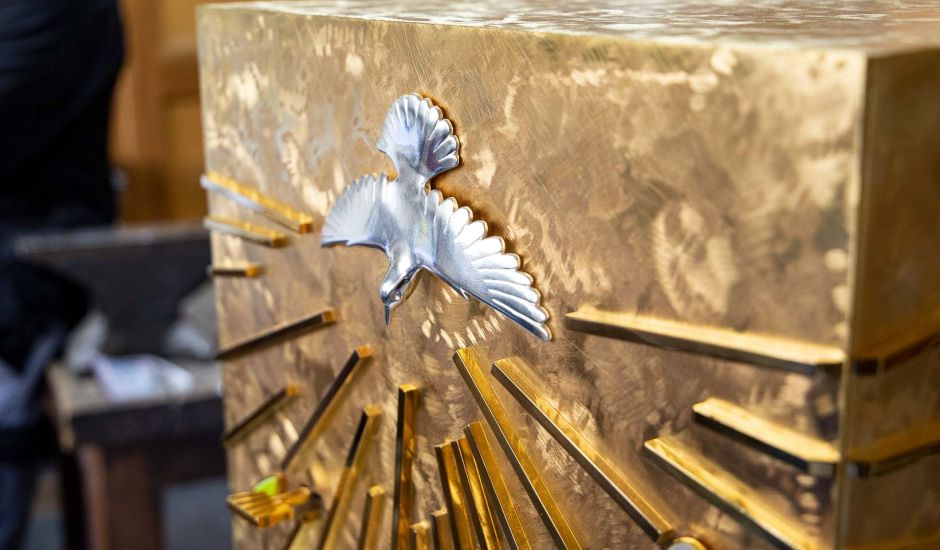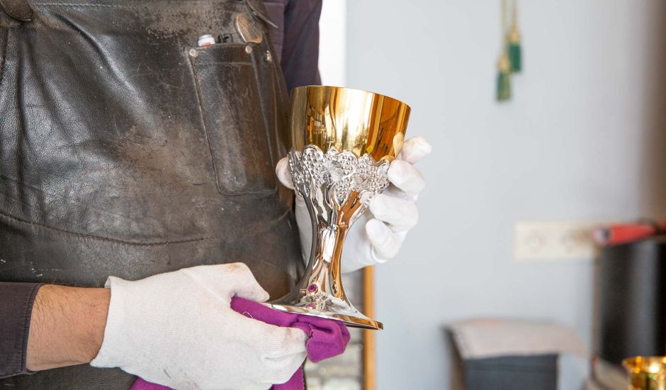 Wir fertigen sakrale Geräte in modernem oder klassischem Design ganz nach Ihren Wünschen und Anforderungen. Priesterkelche, Hostienschalen, Patenen, Monstranzen, Kreuzreliquiare,...